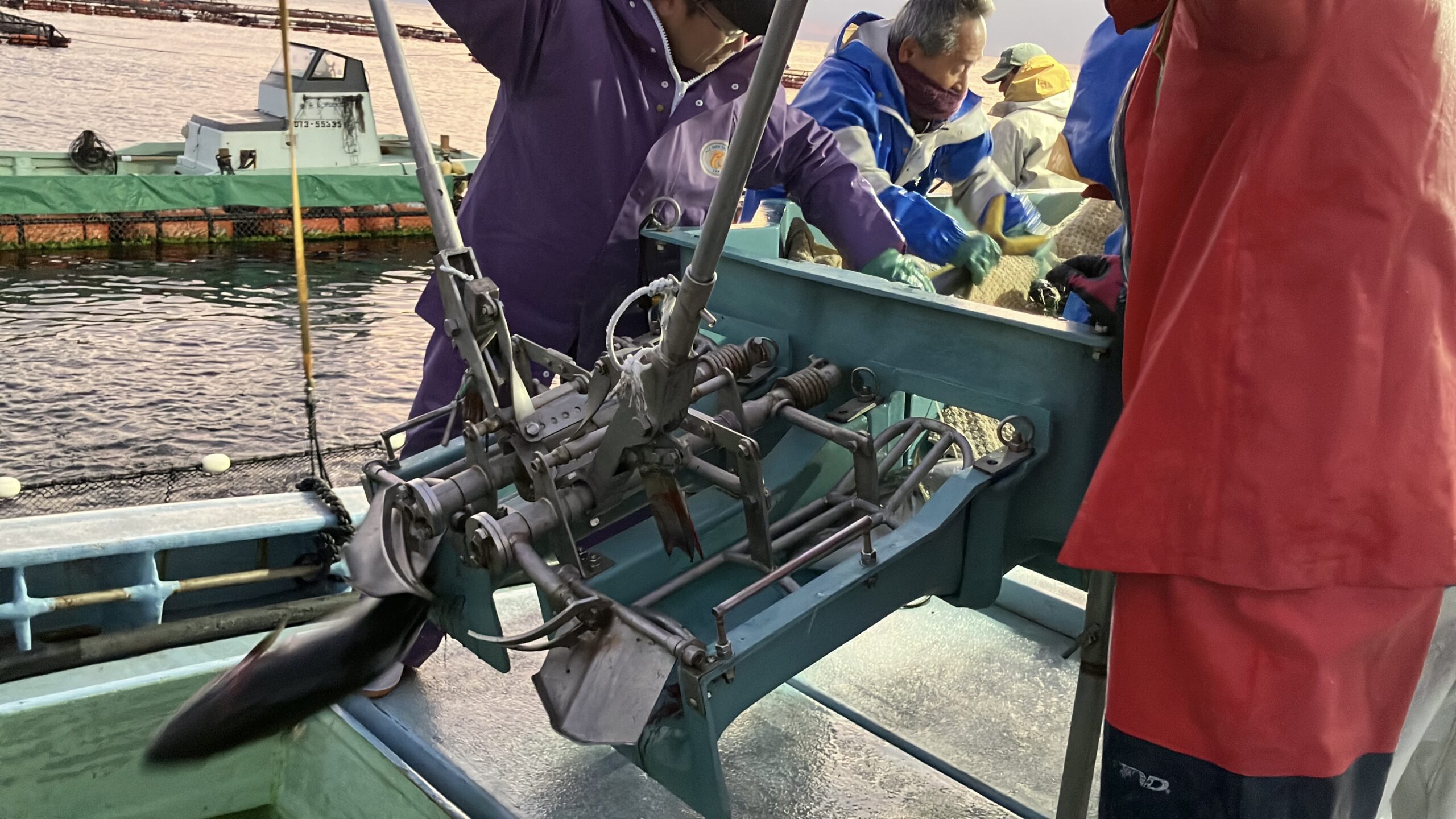 宮崎県の串間市西地区は、ブリやカンパチを中心とした海面養殖業が地区全体の生産額の9割以上を占めている。燃油や飼料高騰の影響により採算性の確保が厳しい状況の中、沖合養殖システムや自動給餌システムの